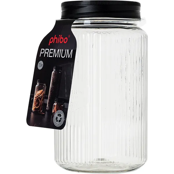 Банка квадратная с крышкой полипроп. 1,3л ,H=190,L=95,B=95мм прозр.,черный