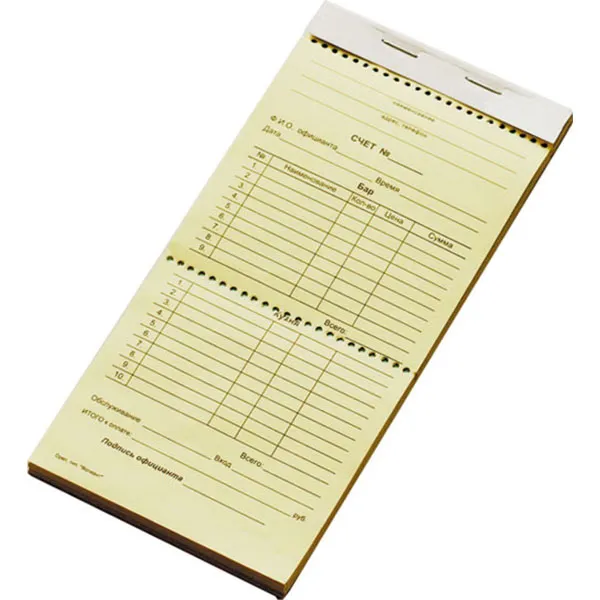 Бланк для счета «Бар,кухня» двухслойный самокопировальный бум. самокоп. ,H=10,L=200,B=95мм разноцвет