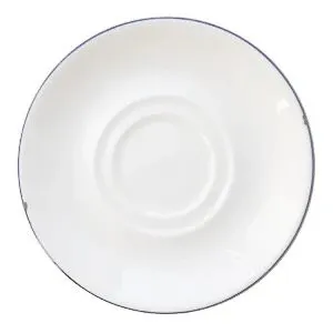 Блюдце 16 см, белое с синим кантом