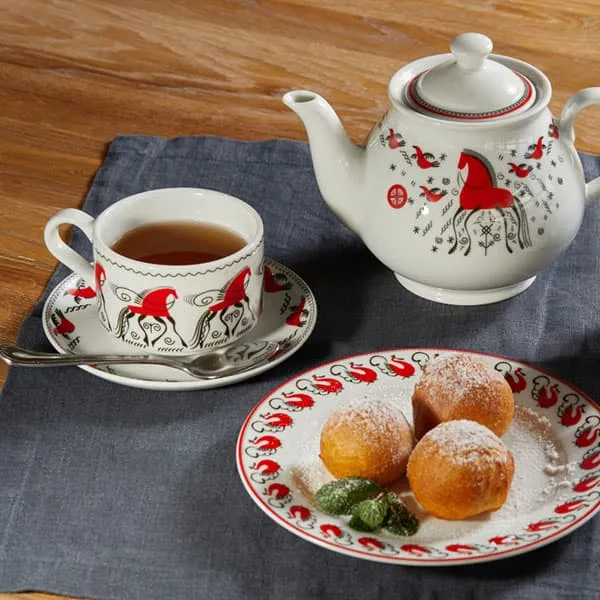 Блюдце «Мезень» Принц Гуси фарфор D=145,H=18мм белый,красный