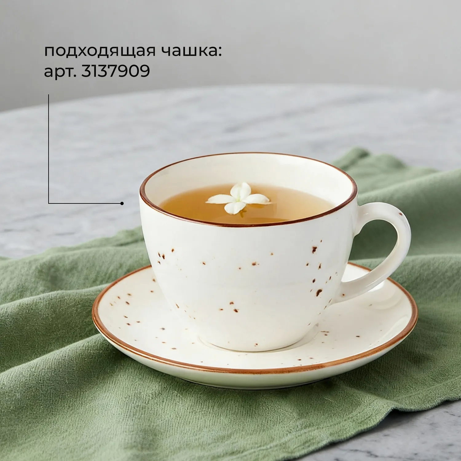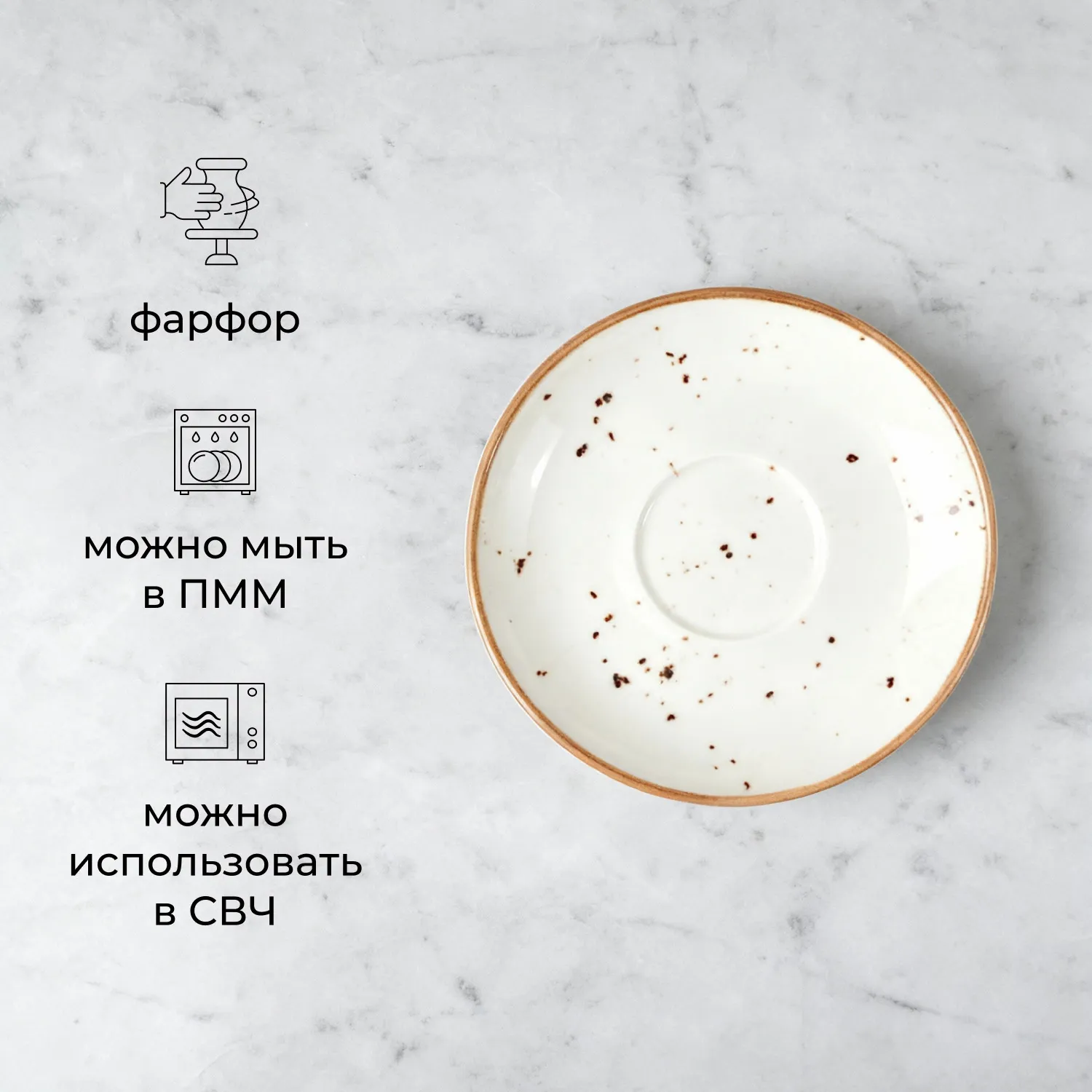 Блюдце «Париж» бренда Kunstwerk – воплощение универсальности в классической круглой форме. Сочетает изысканность молочно-белого фона с теплым коричневым кантом и мягкими крапинами – фирменным штрихом коллекции Paris. Увеличенный диаметр (16 см) делает блюдце не просто подставкой под чашки, но самостоятельным элементом сервировки для подачи кофе, чая или изысканного десерта.