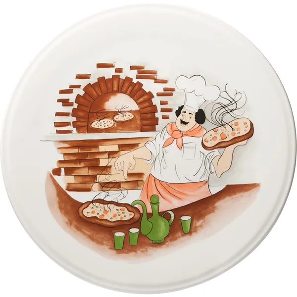 Блюдо для пиццы «Барилла» с рисунком фарфор D=27,H=2см белый,роспись