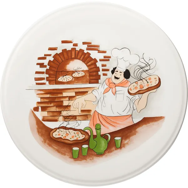 Блюдо для пиццы с рисунком «Барилла» фарфор D=31,H=2см белый,роспись арт. 03020393
