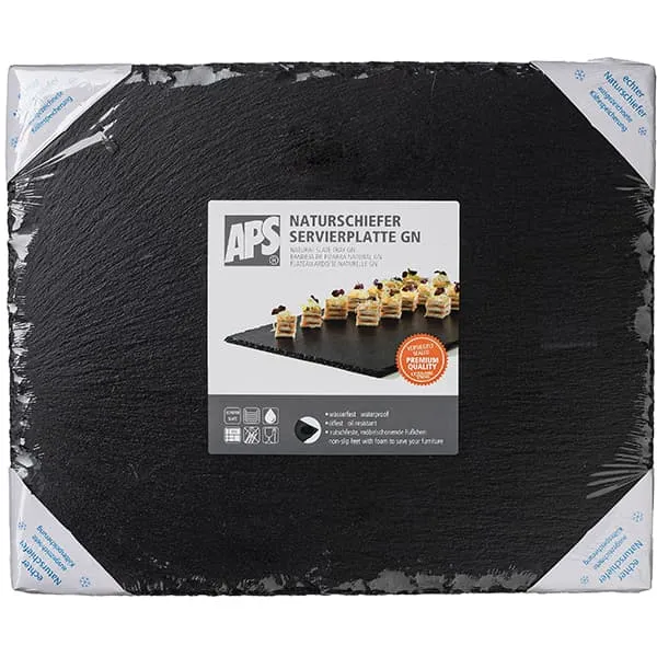 Блюдо для подачи от производителя APS изготовлено из натурального камня – сланца, который известен своей прочностью и долговечностью. Этот материал подходит для подачи нарезок, особенно сыров, фруктов, закусок и десертов. Сланцевое изделие устойчиво к царапинам и повреждениям, что делает его подходящим для частого использования. Натуральный камень черного цвета позволяет создавать элегантную, оригинальную посуду. Ее поверхность однотонная, но с интересной текстурой. При этом легко чистится.