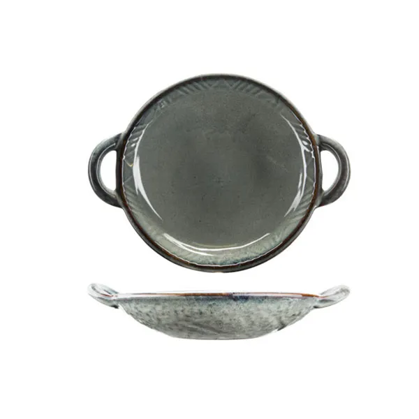 Блюдо для подачи «Арарат» овальное с ручками керамика ,H=55,L=300,B=225мм серо-голуб.
