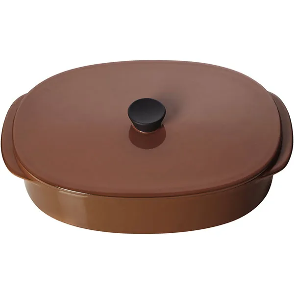Блюдо для подачи «Карактэр» с крышкой с ручками керамика 1,3л ,H=90,L=260,B=185мм коричнев.,черный