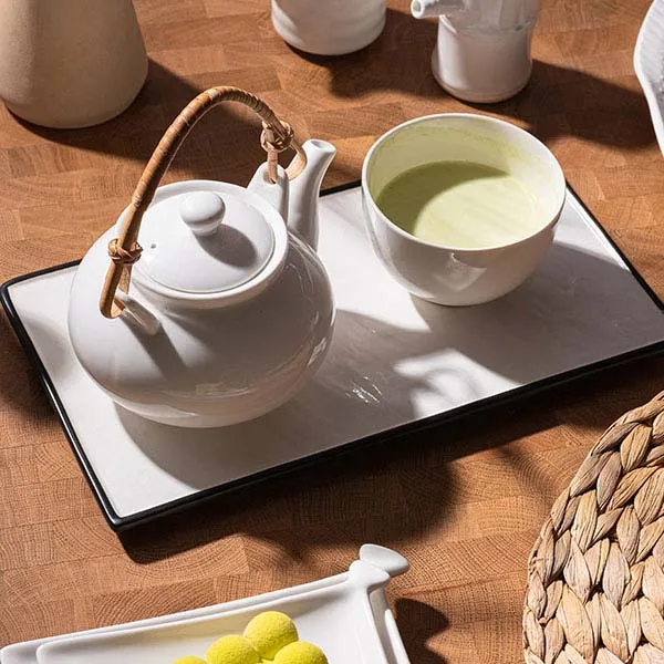 Блюдо для подачи фарфор ,H=15,L=300,B=170мм белый,черный