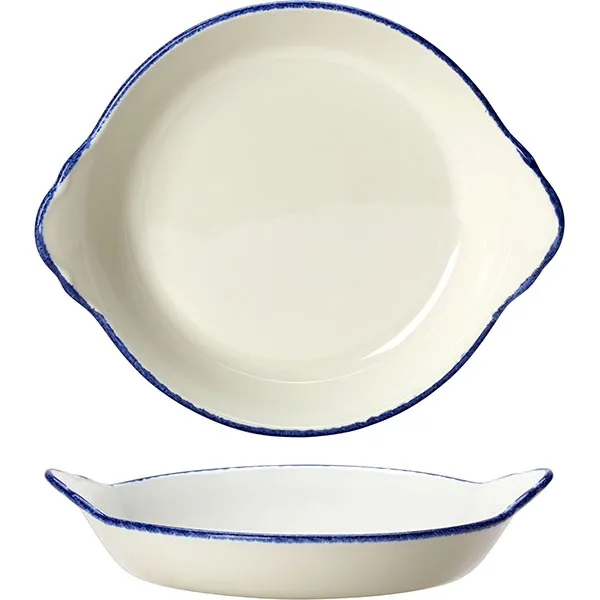 Блюдо для запекания «Блю Дэппл» фарфор 0,5л D=19см белый,синий