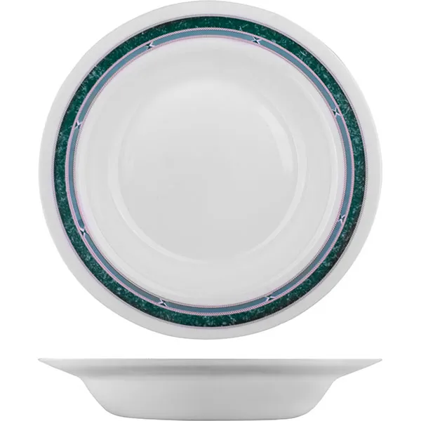 Блюдо «Риалто» круглое глубокое стекло 0,7л D=290,H=44мм белый,зелен.