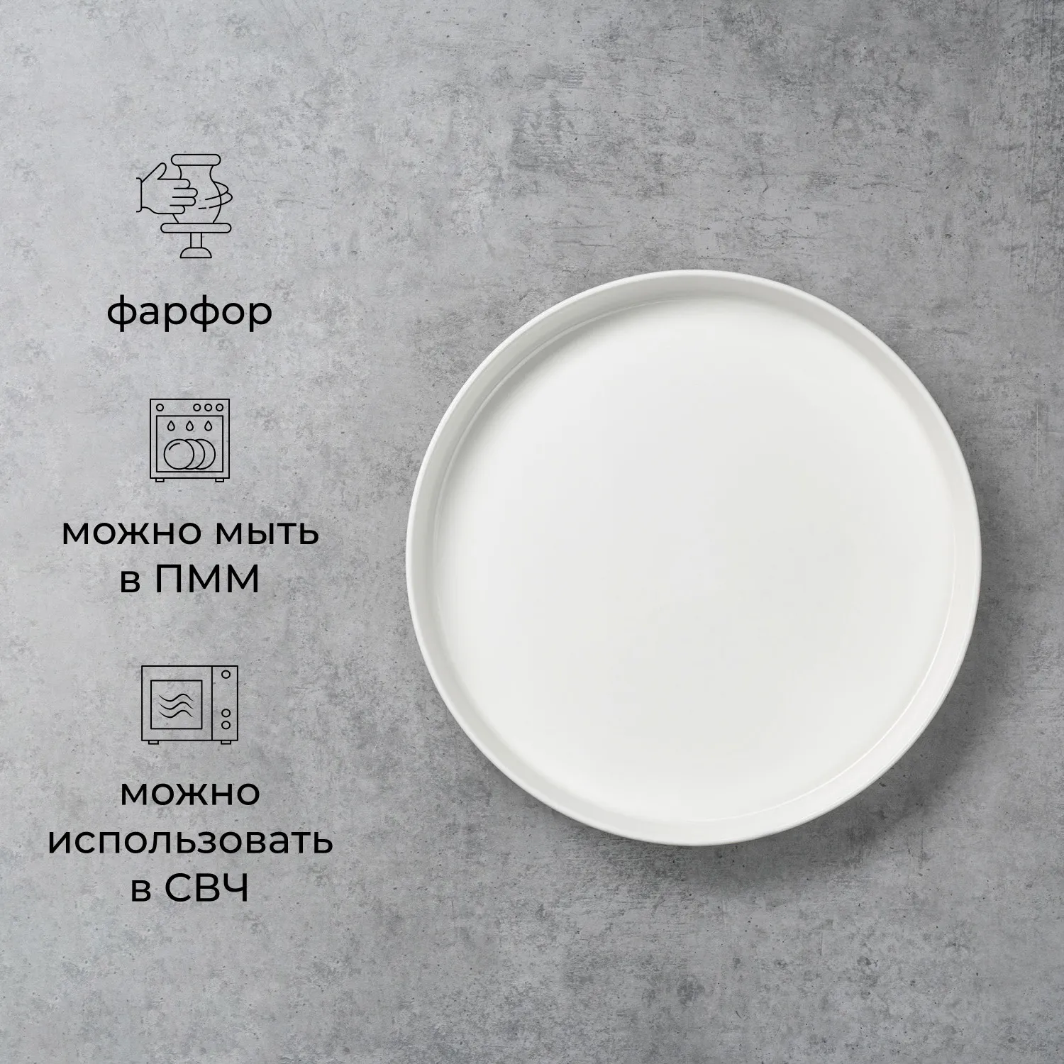 Блюдо круглое с бортом «Кунстверк» — красивая белая тарелка большого размера. Диаметр 22,5 см. Блюдо плоское без бортов совершенной ровной формы с едва ощутимым закруглением.