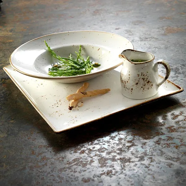 Блюдо «Крафт Вайт» квадратное фарфор ,H=18,L=270,B=270мм белый,коричнев.