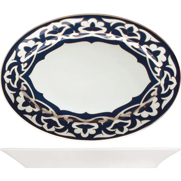 Блюдо «Восток Голд» овальное фарфор ,H=35,L=370,B=260мм синий,золотой