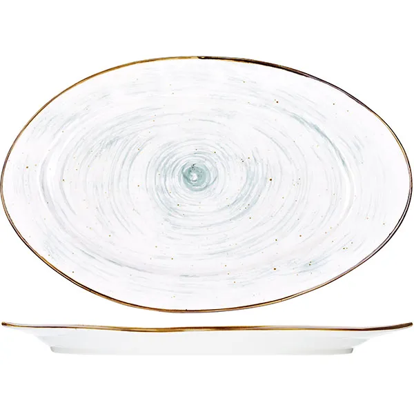 Блюдо «Пастораль» овальное фарфор ,H=25,L=325,B=200мм зелен.