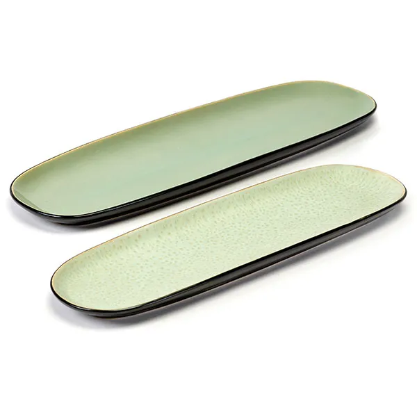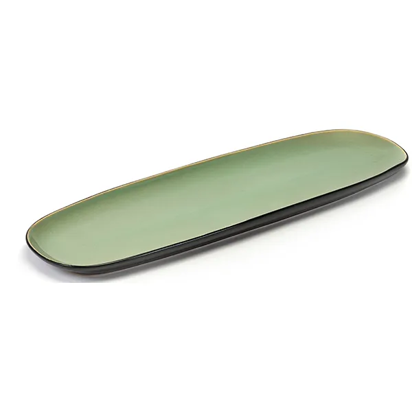 Блюдо «Пьюр» керамика ,H=2,L=40,B=14см зелен.,черный