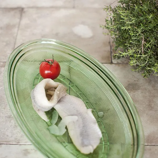 Блюдо сервировочное стекло ,H=47,L=260,B=140мм зелен.