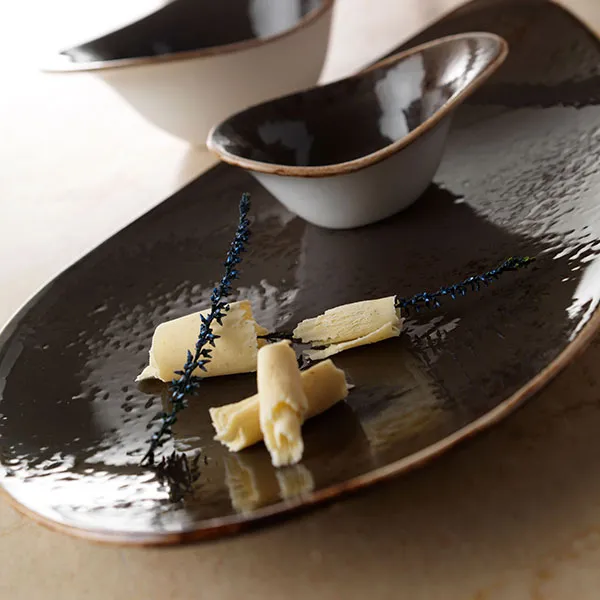 Блюдо «Крафт Грэй» фарфор ,H=35,L=370,B=240мм серый