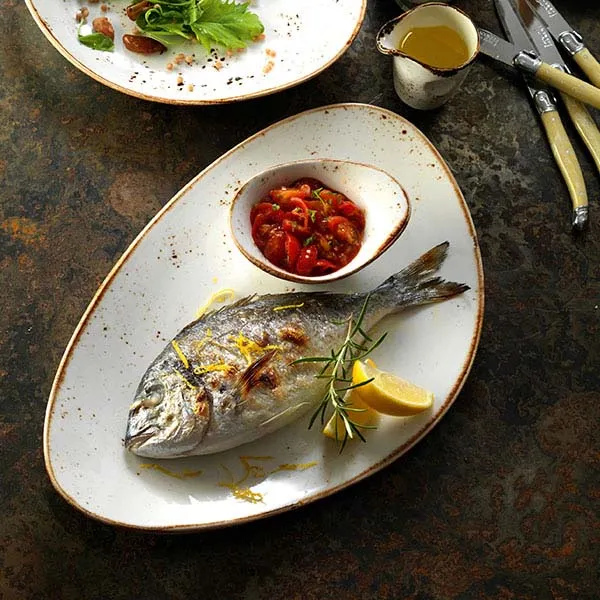 Блюдо «Крафт Вайт» фарфор ,H=35,L=370,B=240мм белый,коричнев.