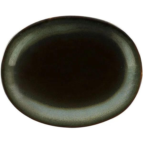 Блюдо «Тренд кортен» овальное фарфор D=22см тем.зелен.