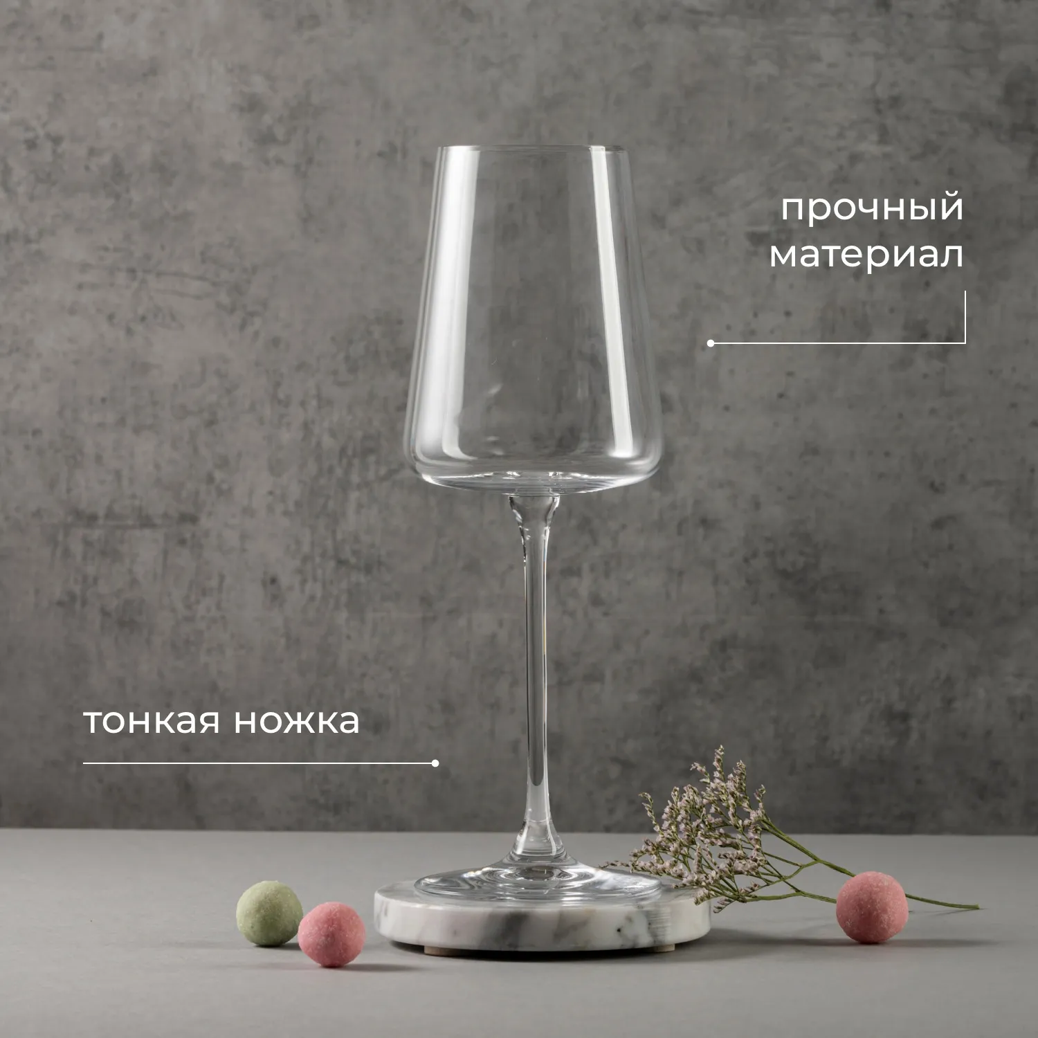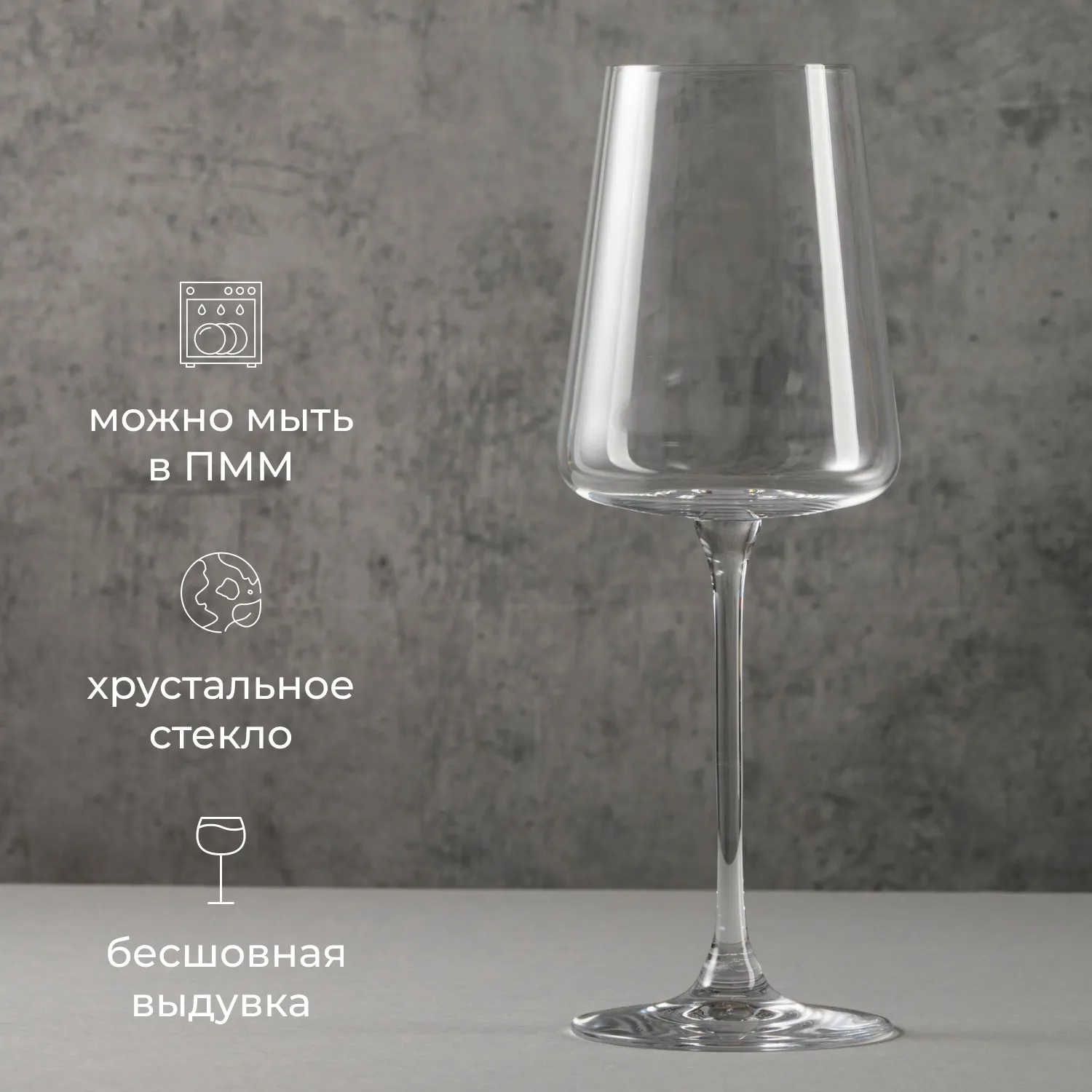 Особенность бокала в том, что у него довольно длинная и тонкая ножка. Прозрачная чаша имеет немного угловатую форму, что придает неординарность. За счет особенностей материала и стиля товара его невозможно не заметить на столе.