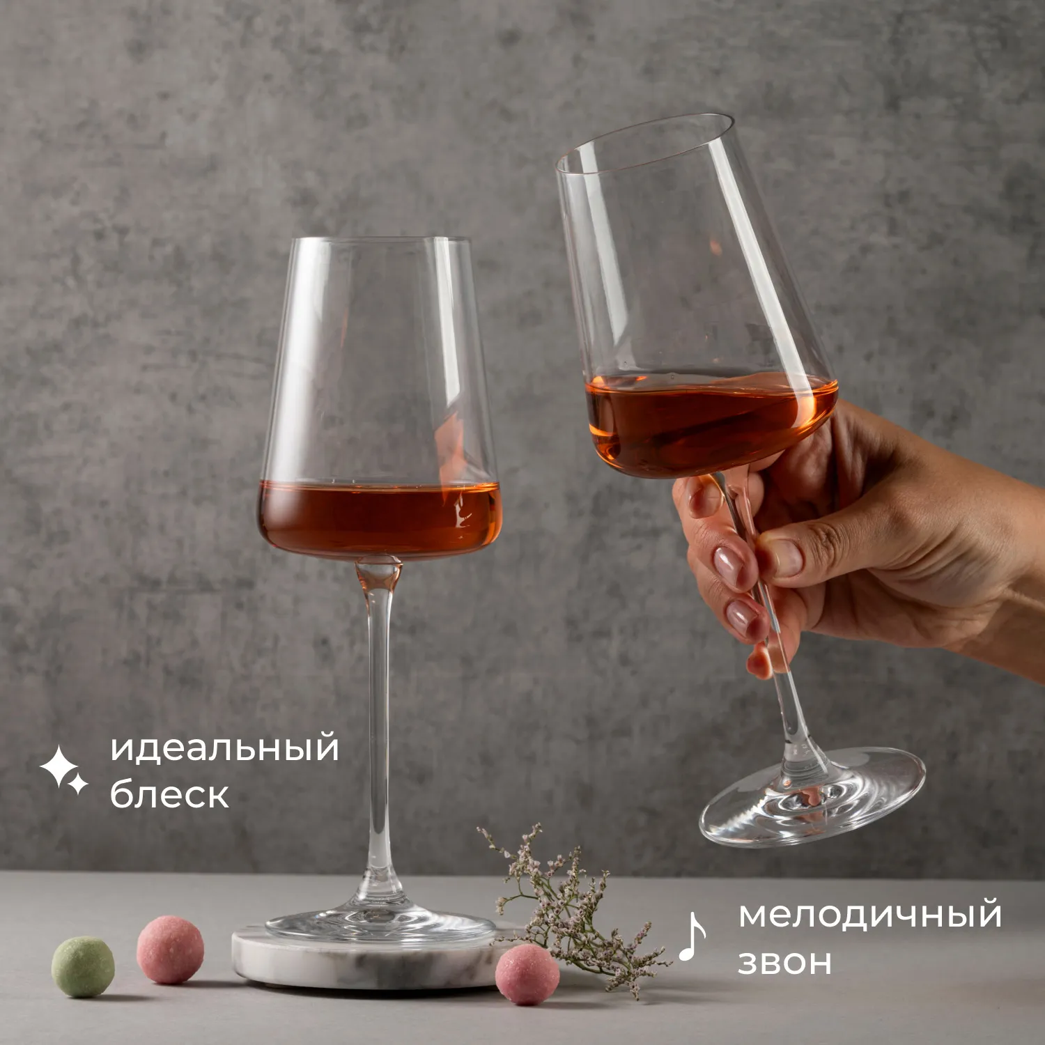 Бренд Рона известен неповторимыми бокалами для вина и шампанского, которые создают в технике бесшовной выдувки, а также изящные хрустальные наборы.