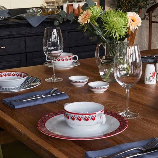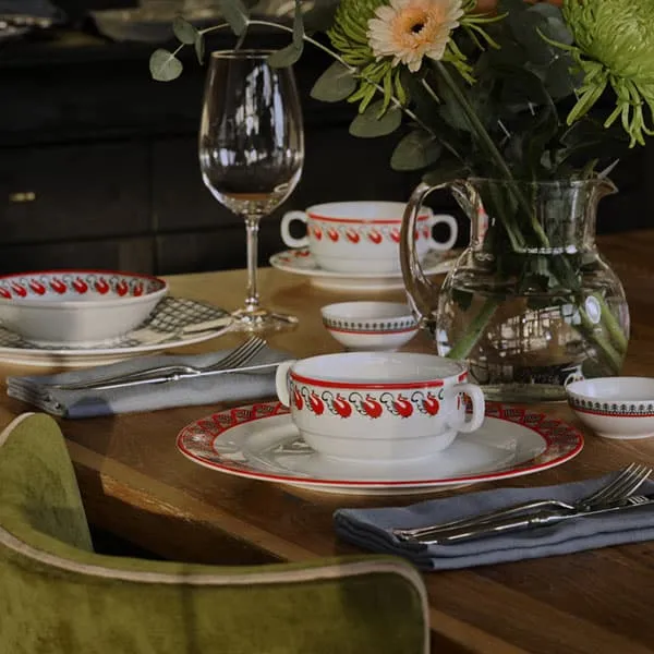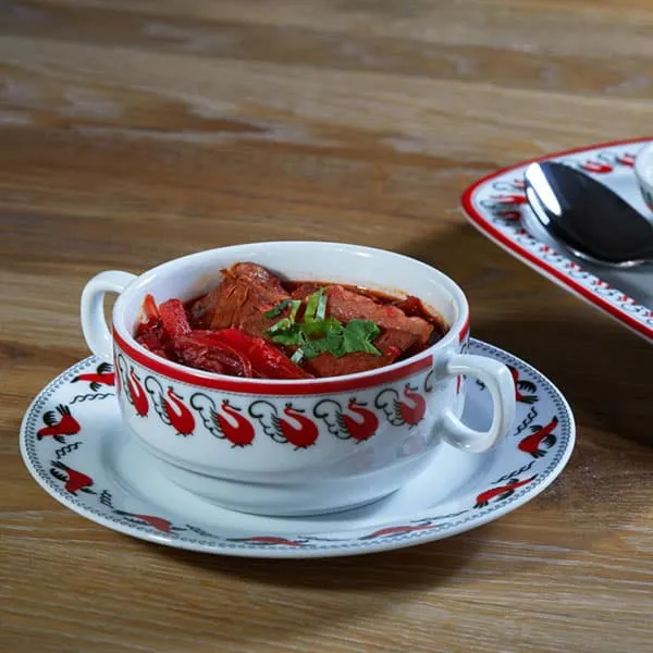 Чашка бульонная «Мезень» Принц Лебеди фарфор 380мл D=95/115,H=60мм белый,красный
