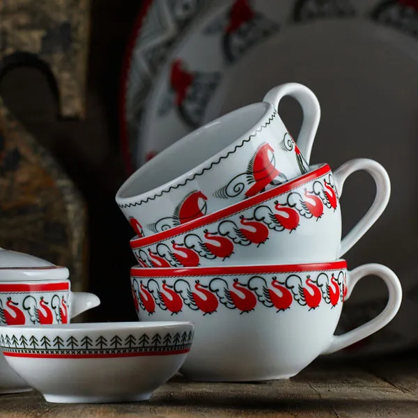 Чашка чайная «Мезень» Практик Кони фарфор 250мл D=90/119,H=63мм белый,красный