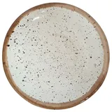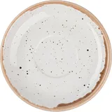 Основной цвет – светло-бежевый, с хаотично расположенными темно-коричневыми вкраплениями. Верхний край украшен ровной полосой насыщенного коричневого цвета, плавно переходящей с внешней на внутреннюю сторону, что создает контраст и подчеркивает эстетику.