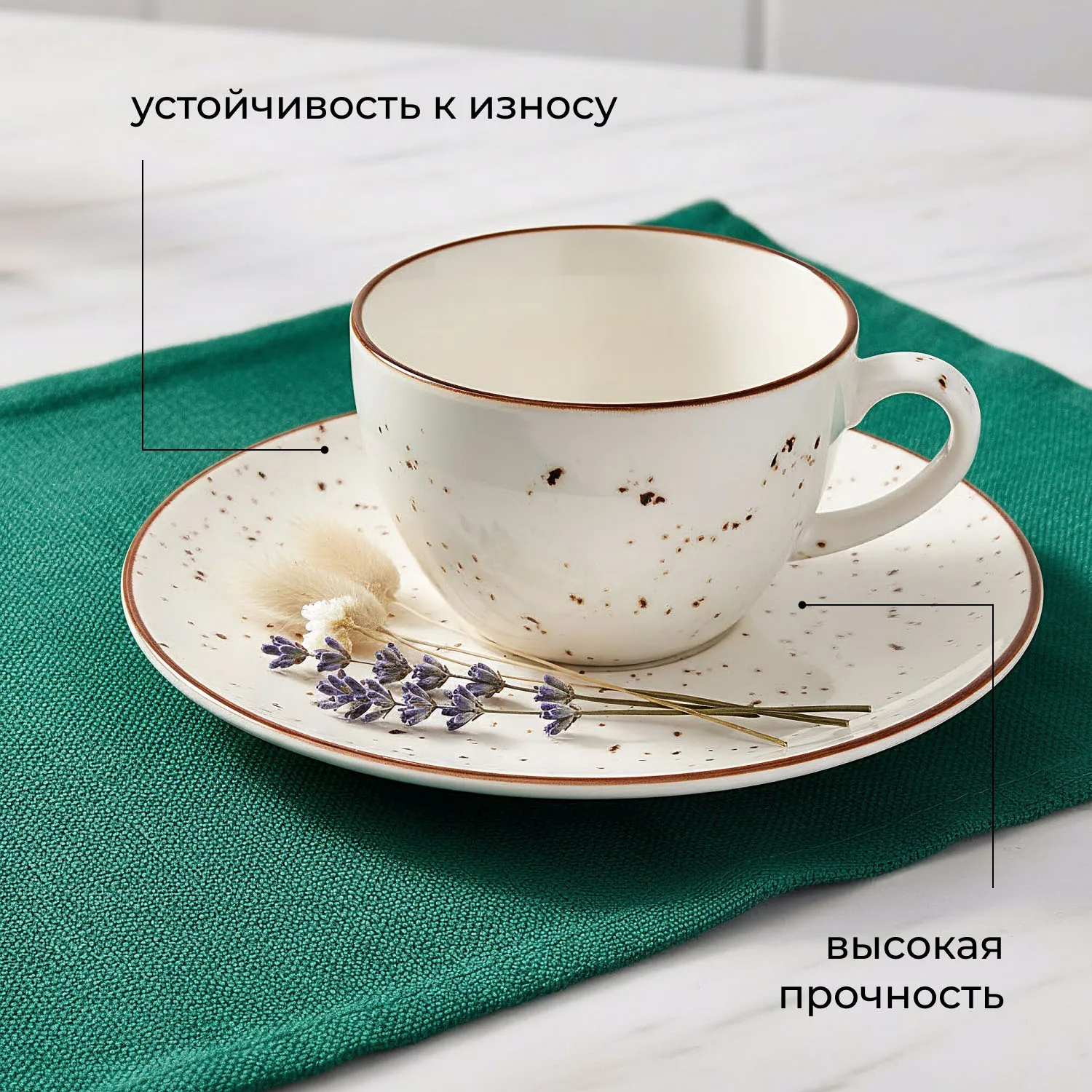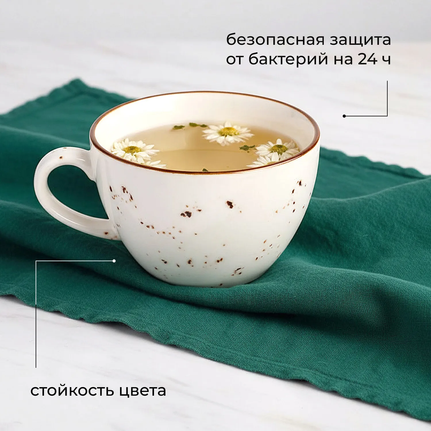Универсальный дизайн и нейтральная палитра уместны в любой обстановке – от утреннего завтрака до вечернего чаепития. А вместительность позволяет наслаждаться ароматным чаем с травами, какао и даже подавать кофе – например, большой латте.