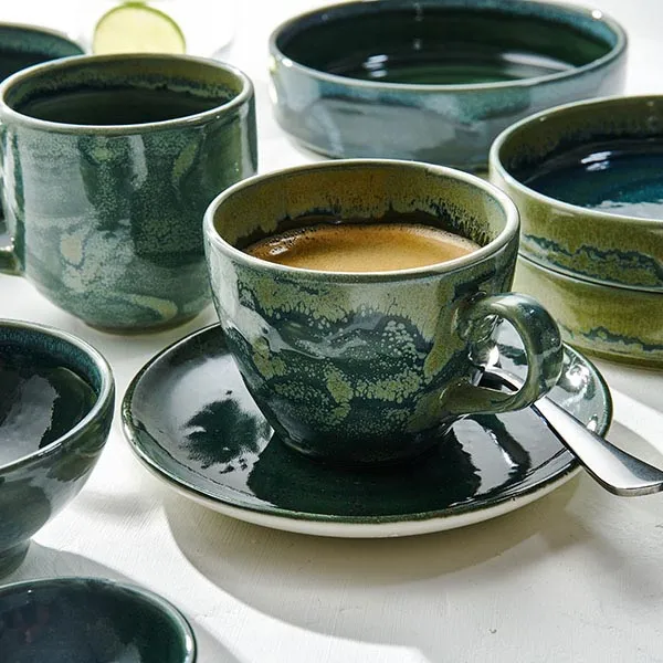 Чашка кофейная «Аврора Везувиус Бернт Эмералд» фарфор 85мл D=65мм бежев.,зелен.