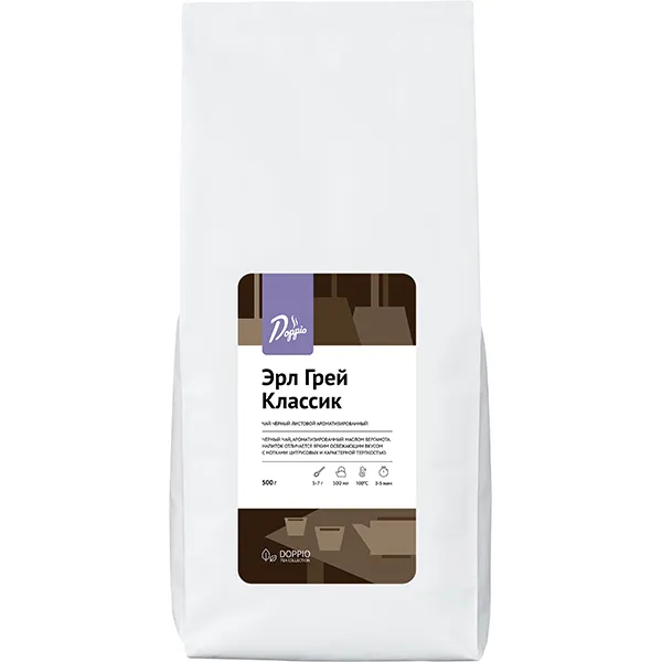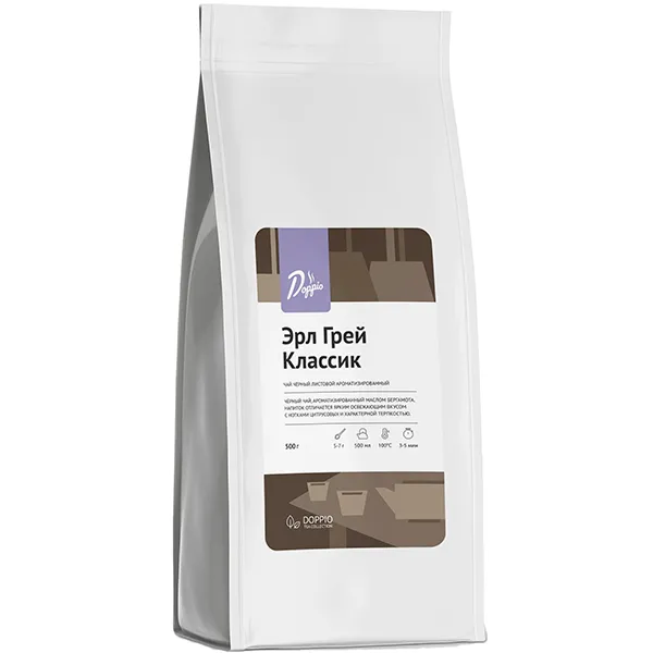 В чайной коллекции Doppio tea производитель предлагает продукт для создания классического чая «Эрл Грей». В его составе черный чай и натуральное масло бергамота, которое придает напитку неповторимую свежесть.
