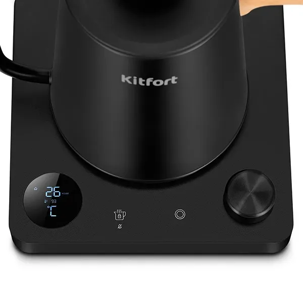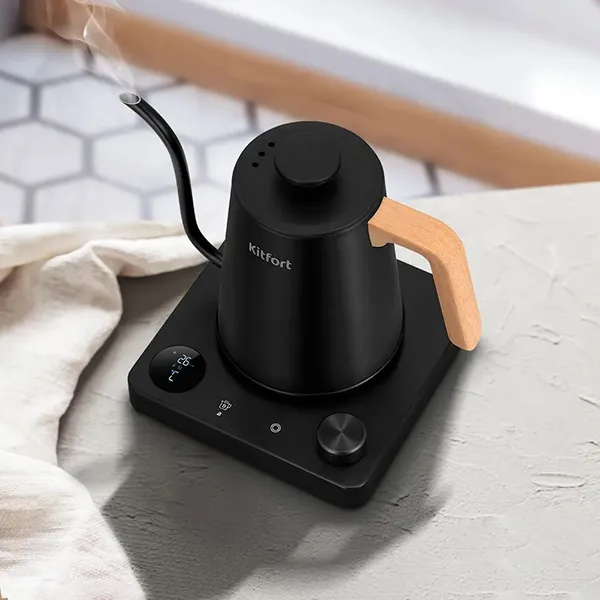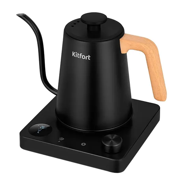 Чайник для приготовления кофе с контролем температуры сталь нерж. 1л D=22,H=21см 1,2Квт черный,дерев