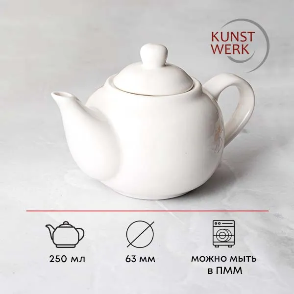 Чайник заварочный «Кунстверк» фарфор 250мл D=63,H=90,L=155мм белый