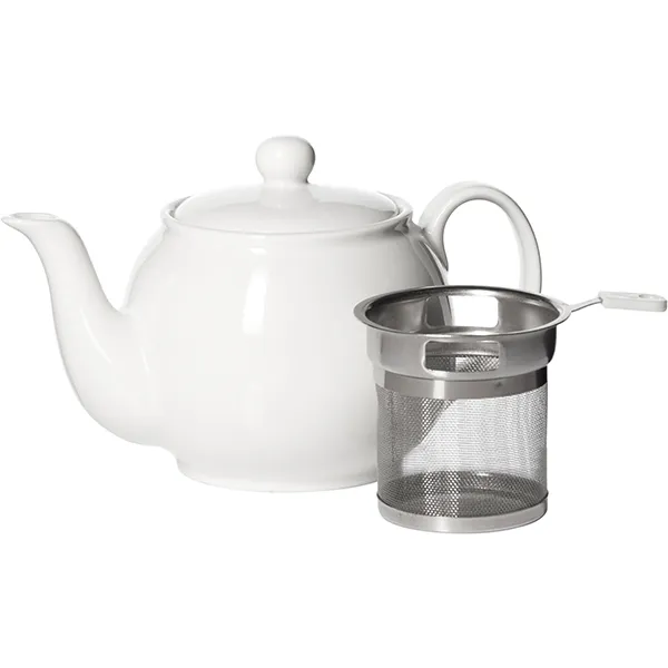 Посуда из фарфора всегда считалась роскошью и применялась только по праздникам. Сегодня вы можете использовать любимый заварник при сервировки как праздничного, так и повседневного стола. Белый классический чайник хорошо удерживает тело и надолго сохранит аромат напитка. Удобное сито подойдет для приготовлени листового чая, травяных настоев, ягодных морсов. Белый чайник из фарфора будет хорошо сочетаться с цветной и однотонной посудой. На сайте есть большой выбор посуды бренда Кунстверк – при желании можно собрать столовый набор для себя или в подарок.