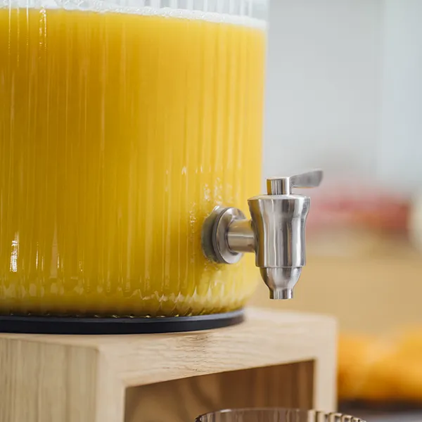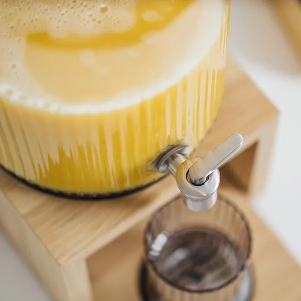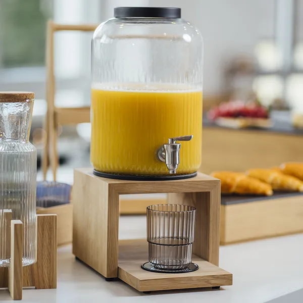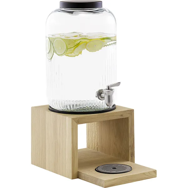 Диспенсер для холодных напитков «Вало» (подставка из дуба) стекло,сталь нерж. 7л ,H=46,5,L=21,B=21см