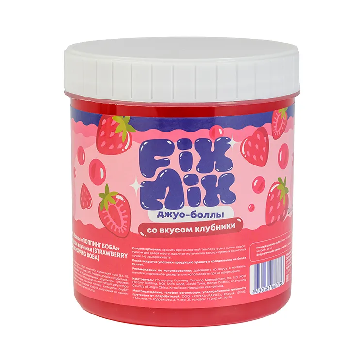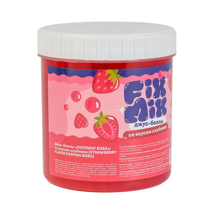Вода, фруктозный сироп, сахар, концентрат клубничного сока (8,5%), сахар, концентрат яблочного сока (1,5%), пищевые добавки (стабилизатор дикрахмалфосфат оксипропилированный, загустители: гуаровая камедь, ксантановая камедь; стабилизатор альгинат натрия; регуляторы кислотности: лактат кальция, молочная кислота; консервант сорбат калия; красители: кармины, схараный коллер III, полученный по «аммиачной» технологии), пищевой ароматизатор.