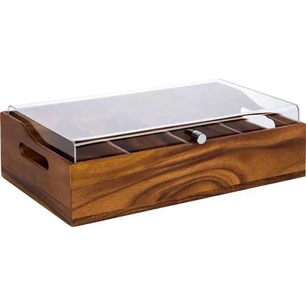 Органайзер для столовых приборов 4 отделения с крышкой акация,пластик ,H=14,5,L=51,B=28см коричнев.
