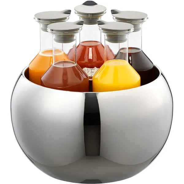 Емкость для охлаждения бутылок + 5 графинов сталь нерж.,стекло D=35,H=32см металлич.