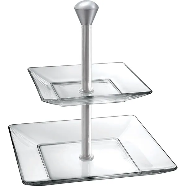 Этажерка «Моди» 2 яруса квадратная для десерта стекло,сталь ,H=28,L=15/21см прозр.,металлич.