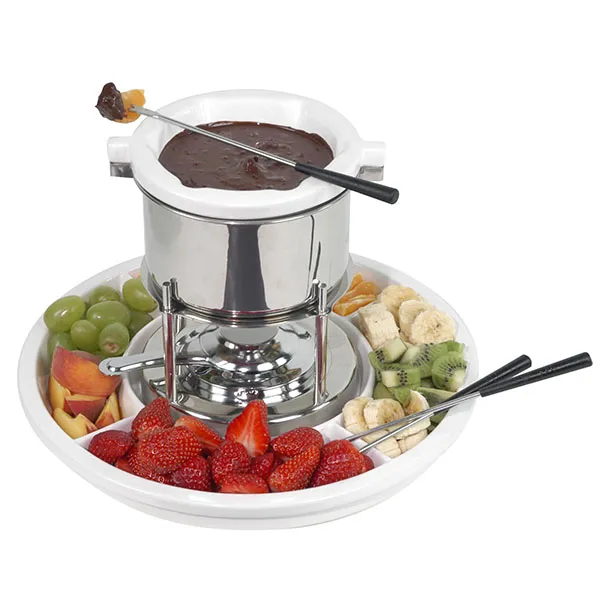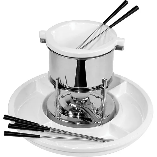 Мармит для фондю д/шоколада + вилочки керамика,сталь нерж. 0,6л D=32/15,H=22см белый,металлич.