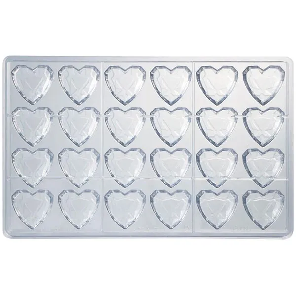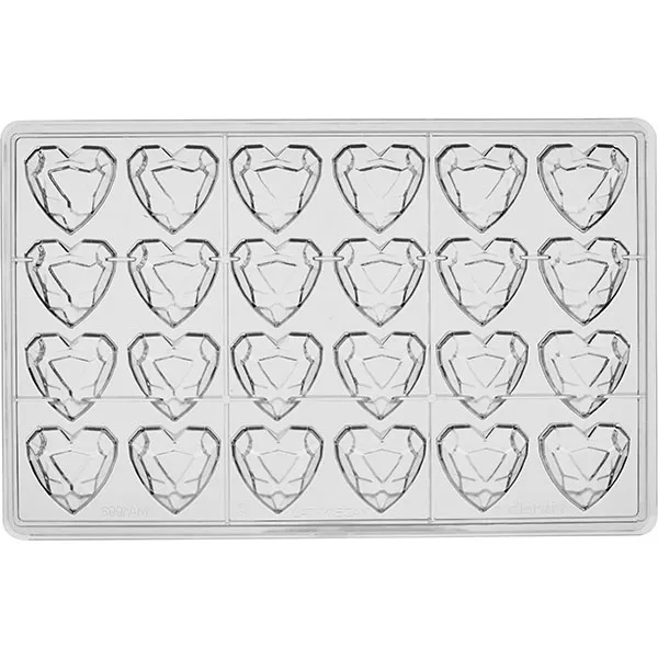 Форма для шоколада «Бриллиант сердце» на листе 275*175мм[24шт] поликарбонат ,H=15,L=33,B=33мм прозр.