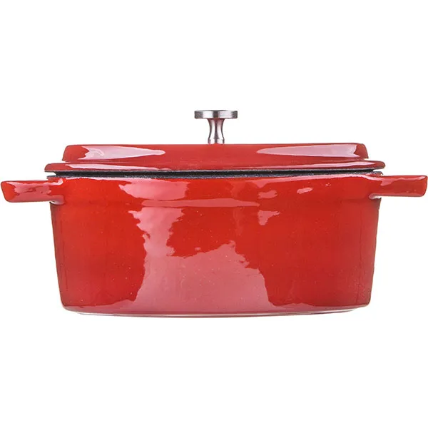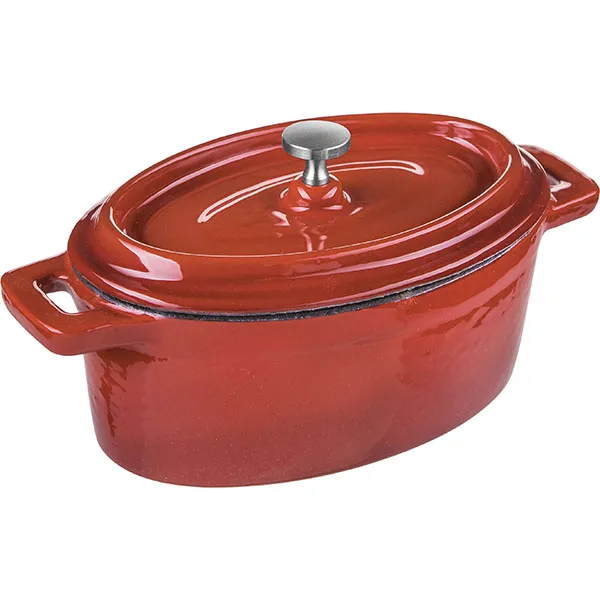 Кастрюля для запекания овальная с крышкой чугун 450мл ,L=15,B=10см красный