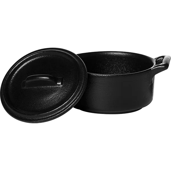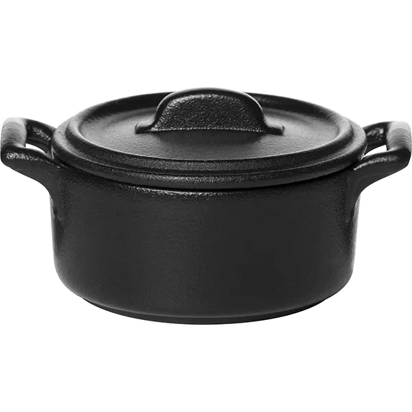 Кастрюля для запекания «Бель Кузин» с крышкой фарфор 80мл ,H=60,L=100,B=65мм черный
