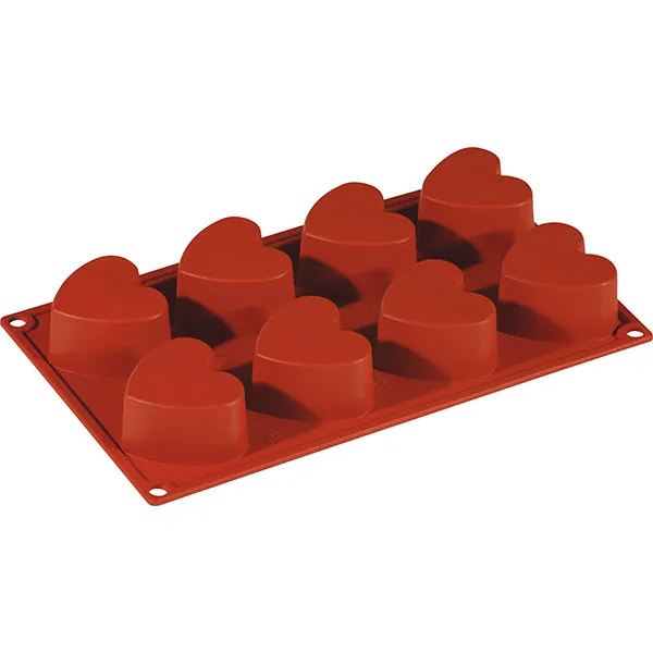 Форма кондитерская «Сердечки» 6.5*6см [8 ячеек] силикон ,H=35,L=295,B=175мм кирпичн.