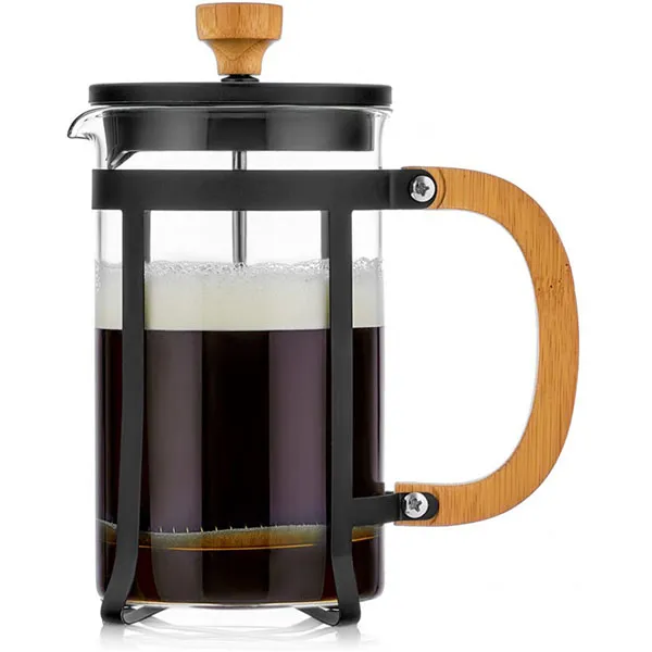 Френч-пресс термост.стекло,сталь нерж. 0,6л D=10,2,H=18,3,L=14,5см прозр.,бежев.