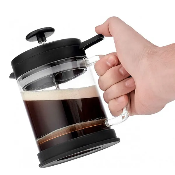 Френч-пресс «Изи» с клапаном стекло борос.,пластик 0,6л D=10,5,H=17,B=13см прозр.,черный