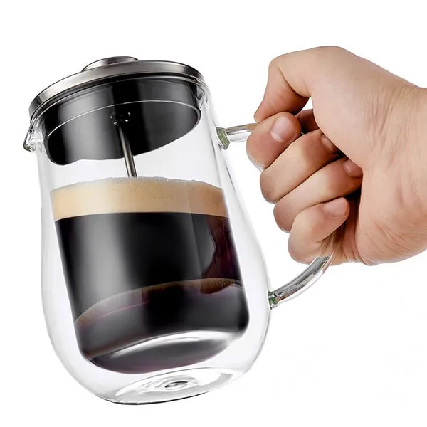 Френч-пресс «Флорал» с двойными стенками стекло борос.,сталь нерж. 0,6л D=12,5,H=18,B=14,5см прозр.,