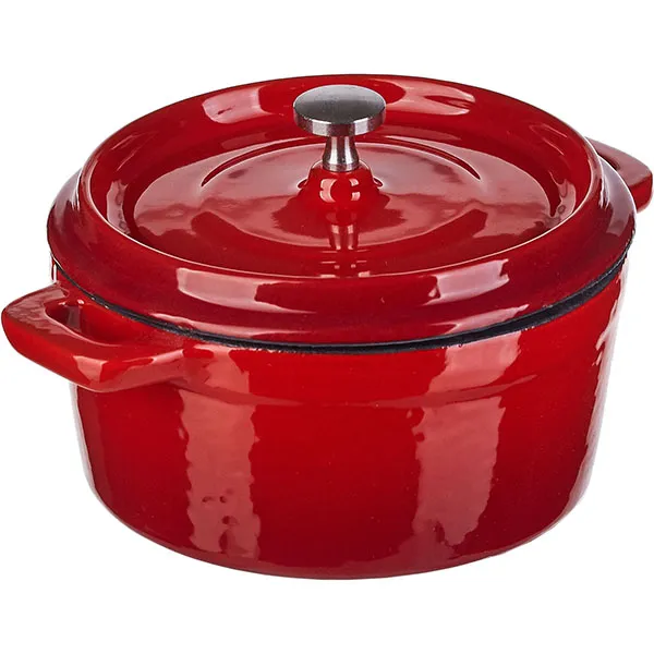Кастрюля для запекания с крышкой чугун 0,5л D=12см красный