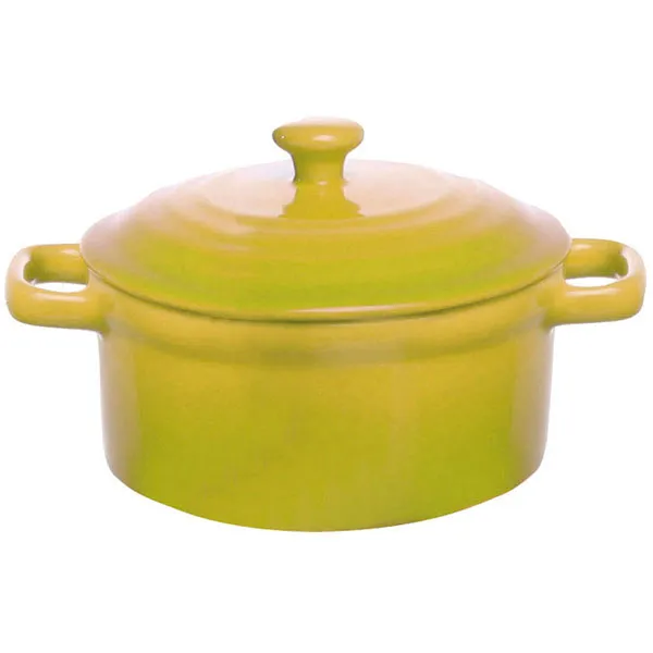 Горшок для запекания «Форно» с ручками фарфор 450мл D=12,H=34,L=32,B=30см желто-зел.