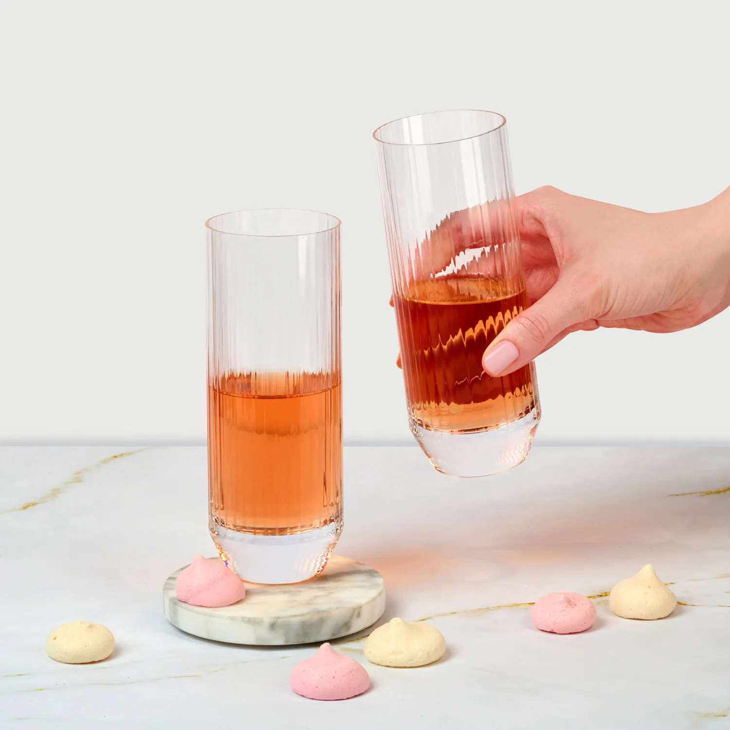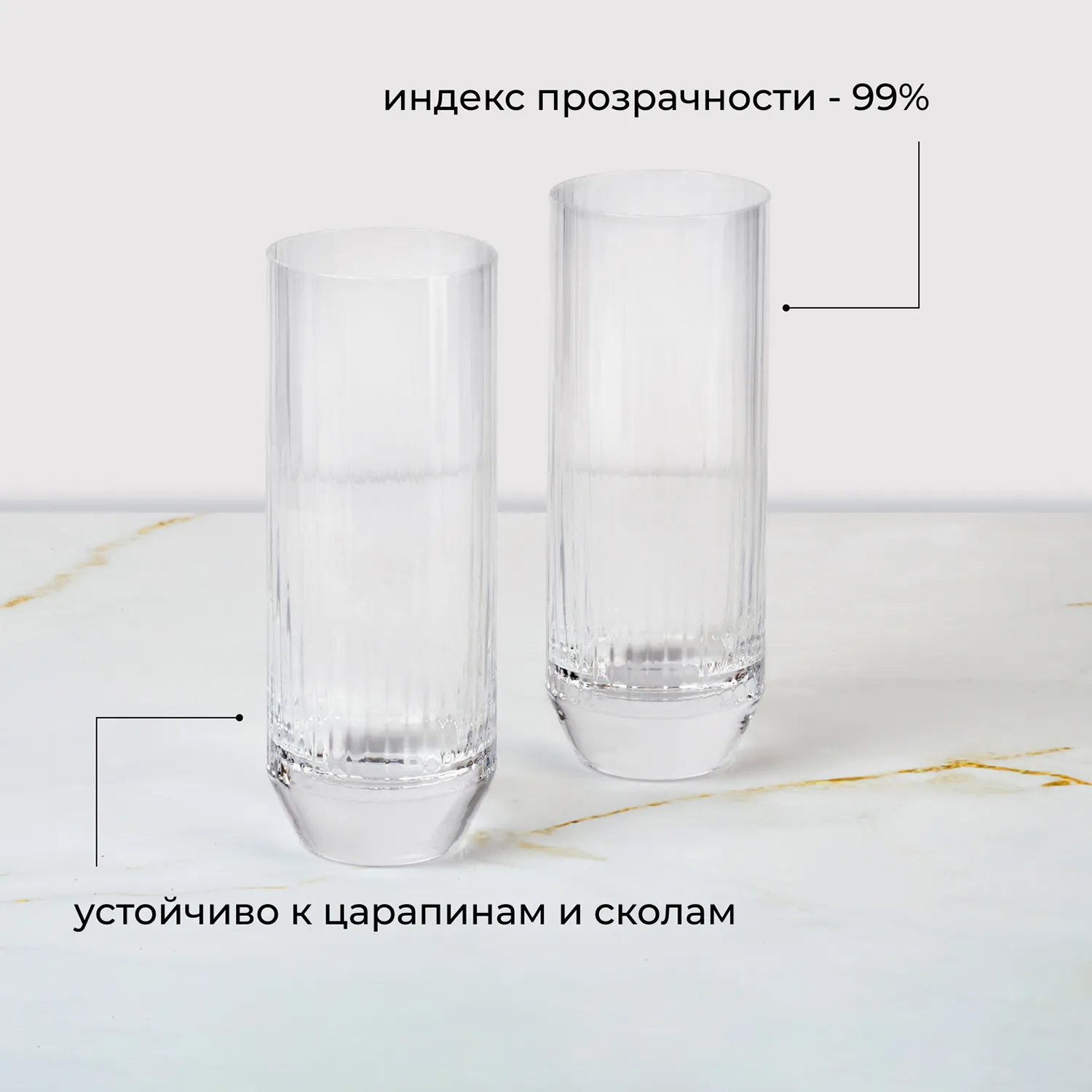 Хайбол «Биг топ» – стакан нестандартной формы. Он высокий и ровный, его стенки дополнены легкими гранями, которые заставляют посуду переливаться при свете ламп. При этом у стакана плотное дно, которое имеет немного скошенные края. Это добавляет товару некую футуристичность.