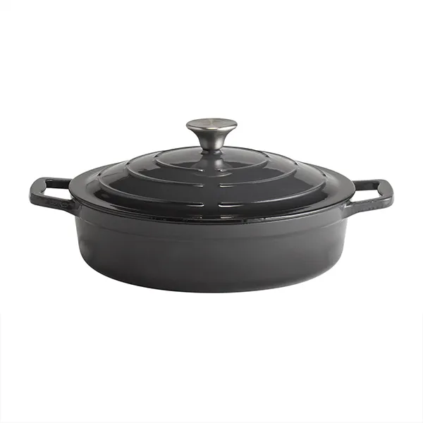 Кастрюля для сервировки «5 звезд» с держателем крышки (индукция) эмалиров.чугун 3л D=28,H=7см антрац